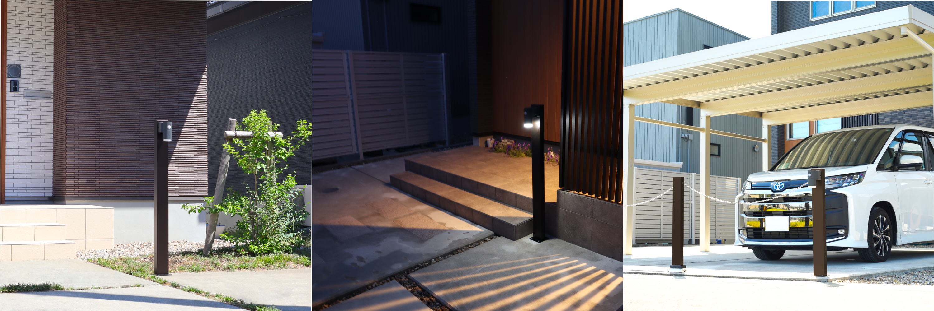 「ポールライト」「コーナーポール センサーライト付き」は、設置場所や用途に応じて自由に選べる新しい外構アイテムです。